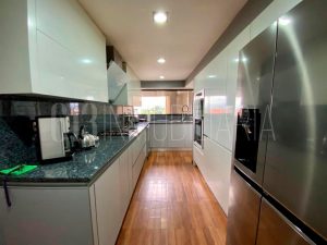 El apartamento en Santa Eduvigis, se presenta como una propiedad completamente remodelada y equipada. Con una superficie de 232 metros cuadrados, ofrece un espacio amplio y cómodo para una familia. Cuenta con 3 habitaciones principales con aire acondicionado, una habitación de servicio, 4 baños, cocina moderna equipada con sistema Blum, área de lavandería, amplio vestier en la habitación principal con jacuzzi, closets remodelados, estudio, family room con biblioteca, 2 puestos de estacionamiento, un ascensor privado y de servicio. El edificio cuenta con amplias áreas comunes que incluyen parque infantil, 3 salones de fiestas, área de picnic, parrilleras, cancha de usos múltiples, caminerías, jardines, planta eléctrica para las áreas comunes y ascensores de servicio, vigilancia privada las 24 horas y los puestos de visitantes brindan un alto nivel de seguridad a los residentes.