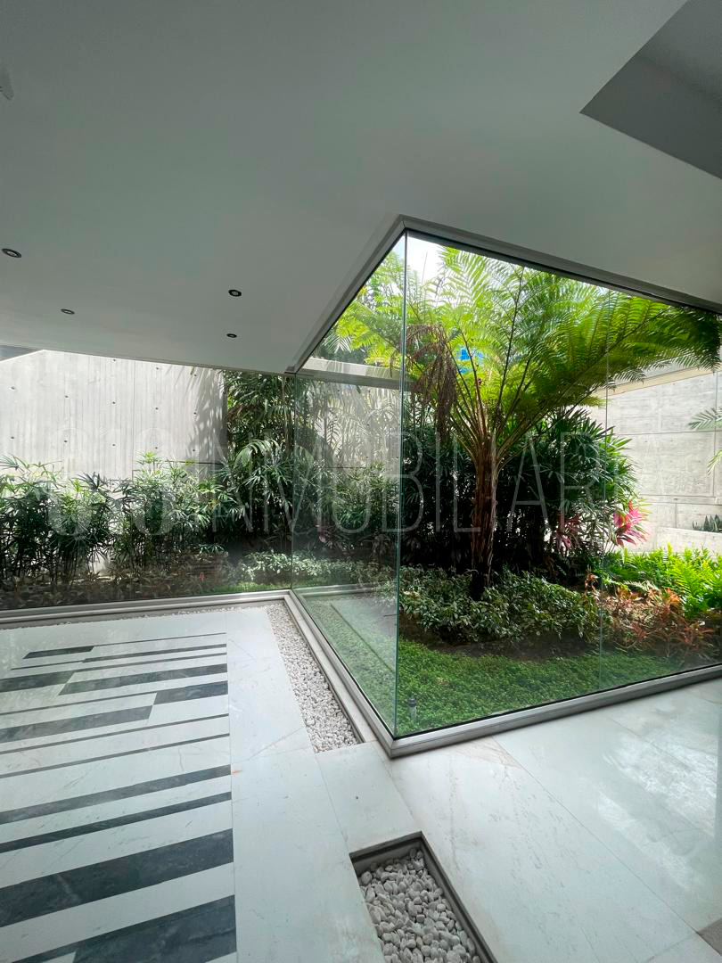 Esta propiedad Duplex, tiene un área total construida de aproximadamente 767m2, con áreas adicionales que suman 72m2, un amplio jardín privado de aproximadamente 247m2. Además, cuenta con una piscina exclusiva para el apartamento, un deck, un área de parrillera y una terraza semi techada. En la PB encontrarás un amplio salón comedor, una cocina moderna, un área de lavado y un cuarto de servicio. La planta alta alberga tres habitaciones, cada una con su baño privado y vestidor, ofreciendo privacidad y comodidad a sus ocupantes. Cuentan con un ascensor privado, un maletero, un cuarto de chofer con su propio baño y cuatro puestos de estacionamiento.