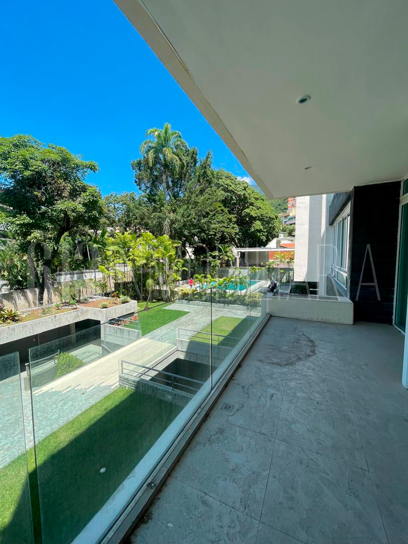 El apartamento cuenta con un área total de 450m2 con un área adicional de aproximadamente 136m2 destinados a jardín o terraza, ofreciendo un espacio al aire libre considerable. La distribución interior es amplia y funcional, incluyendo: 4 habitaciones, salón, comedor, estudio, family room, 2 maleteros, 1 cuarto de chofer, 4 puestos de estacionamiento.  El edificio cuenta con piscina, lo cual es un atractivo adicional para los residentes.